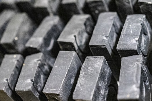 Huile d’olive extra vierge, huile de noix de coco*, huile de ricin, beurre de karité*, huile de tournesol*, eau, argile rouge, bois de santal moulu, charbon végétal, parfum au santal et poivre noir, glycérine végétale, soude caustique.